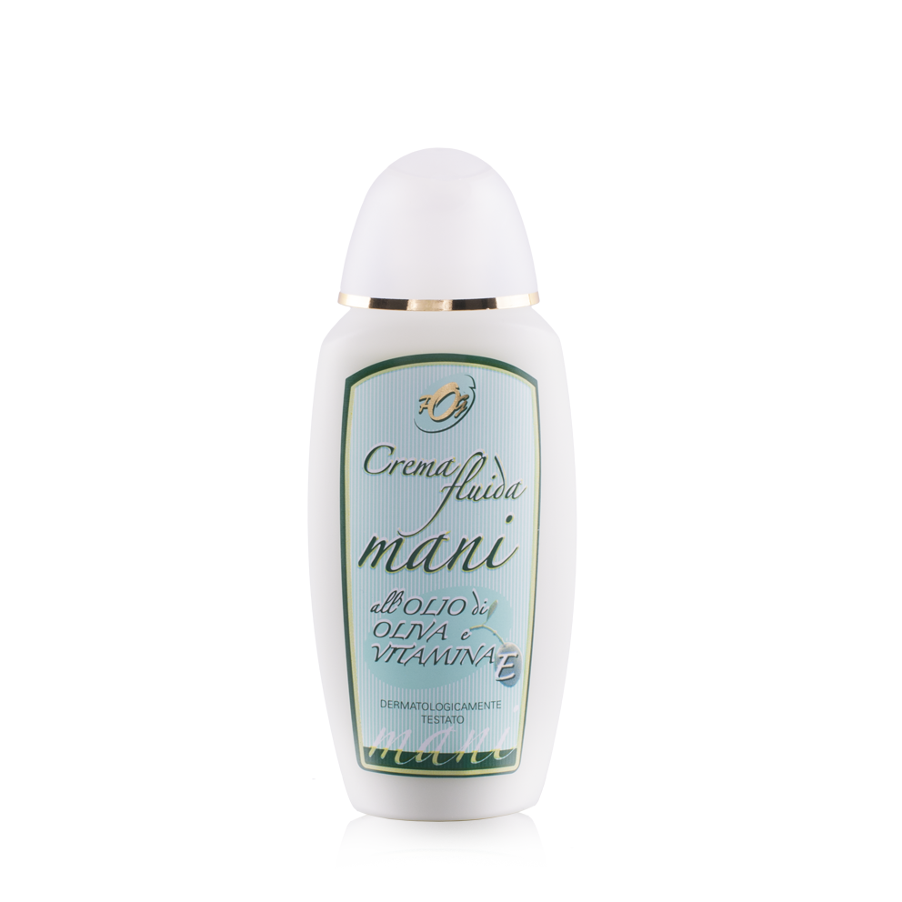 Le mani sono la parte del nostro corpo più esposta alle aggressioni degli agenti esterni. Questa crema fluida, ricca di glicerina vegetale e di insaponificabile dell’Olio di Oliva, favorisce la protezione e l’idratazione della cute donando un piacevole sollievo e migliorando l’elasticità della pelle. L’azione antiossidante della Vitamina E aiuta a contrastare l’invecchiamento cutaneo causato dai radicali liberi aumentando la resistenza alle aggressioni esterne.